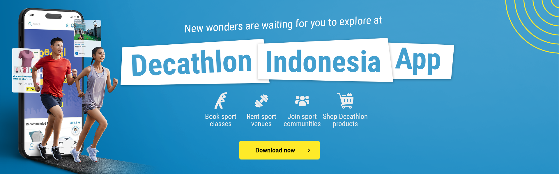 Decathlon menyediakan berbagai produk olahraga terbaik dengan harga yang terjangkau. Temukan berbagai macam perlengkapan & peralatan olahraga terlengkap dan kualitas terbaik dengan aman, mudah, dan cepat! Produk olahraga yang tersedia di Decathlon didesain dengan bahan-bahan berkualitas & tahan lama. Dapatkan juga keuntungan berupa garansi selama 2 tahun, pengembalian barang, dan kurir instan setiap pembelian produk di Decathlon Indonesia. Rasakan pengalaman berbelanja dengan mudah dan aman hanya di Decathlon Indonesia! Tersedia juga berbagai pilihan pembayaran mulai dari Bank Transfer, COD, dan kartu kredit. Tunggu apa lagi? Segera kunjungi toko atau situs kami untuk mendapatkan produk-produk olahraga dengan kualitas terbaik hanya di Decathlon Indonesia. Toko kami tersedia di berbagai kota besar di Indonesia seperti Jakarta, Makassar, Surabaya, Bekasi, dan Tangerang.